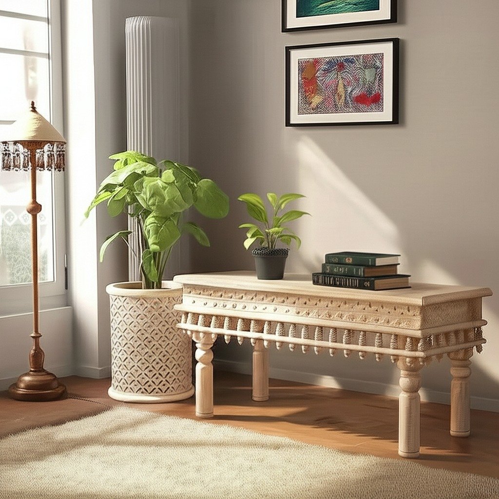 This beautiful piece for your home was handcrafted in India using sustainable and organic materials. Carved by hand in solid wood and finished to give a rustic country feel. Beautiful on it’s own or can be used in a set of few mixed pieces. More available in our store.
