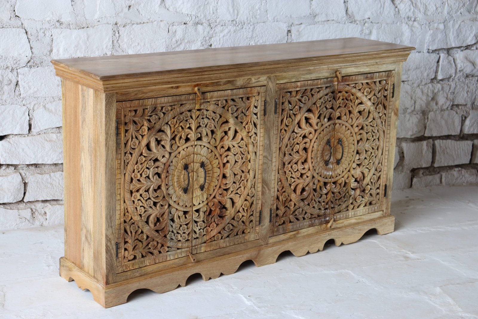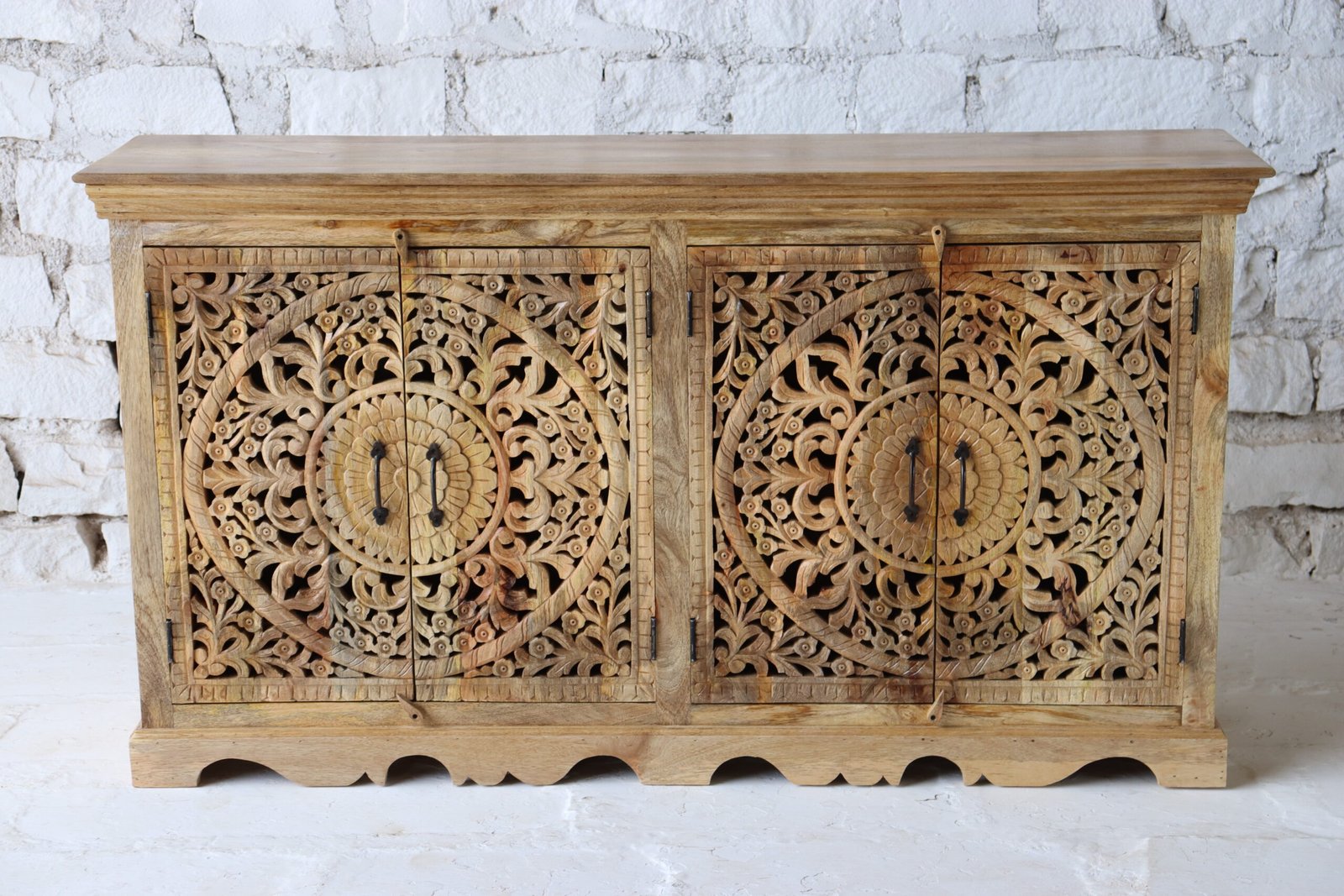 Designed for versatile storage, it features spacious drawers and cabinets ideal for organizing dining essentials, décor, or everyday items. The smooth natural finish enhances the wood’s earthy tones, making it a beautiful addition to both contemporary and traditional interiors. Each piece is handcrafted with care, ensuring durability, authenticity, and a refined charm that elevates any living or dining space.